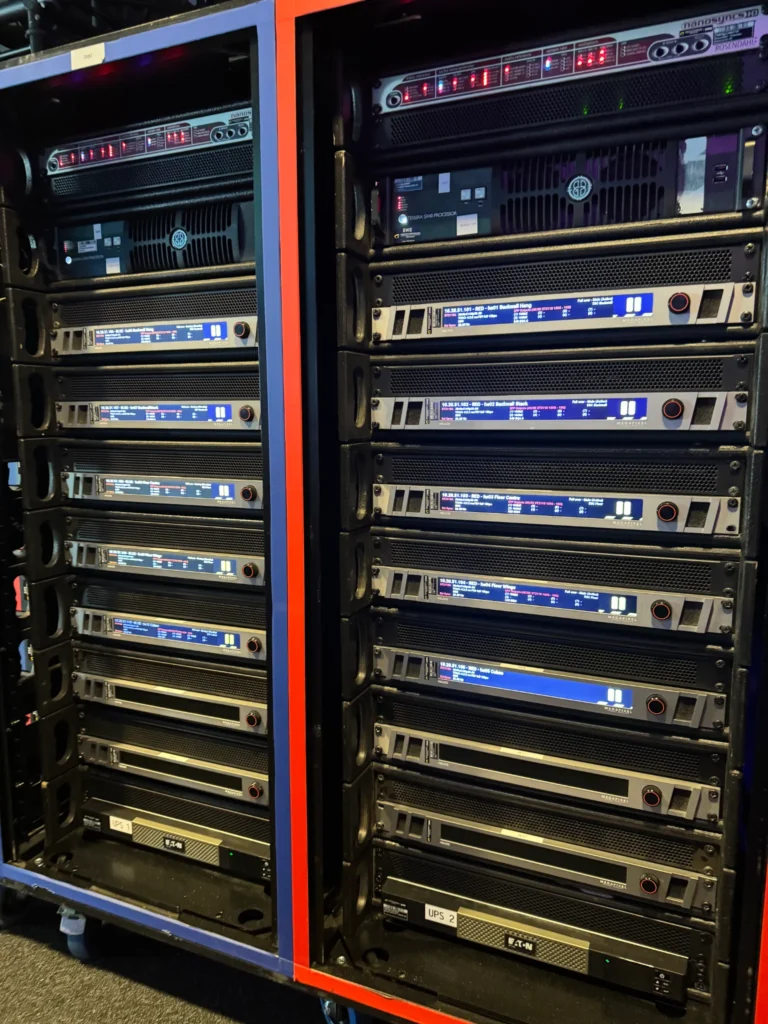 Megapixel worked closely with Creative Technology to deliver a fully redundant SMPTE ST 2110 video distribution network, feeding video from eight Disguise GX3 servers to ten HELIOS® LED Processors – utilizing Megapixel’s newly released 100G fiber input module, a recent addition to CT Northern Europe’s rental fleet.